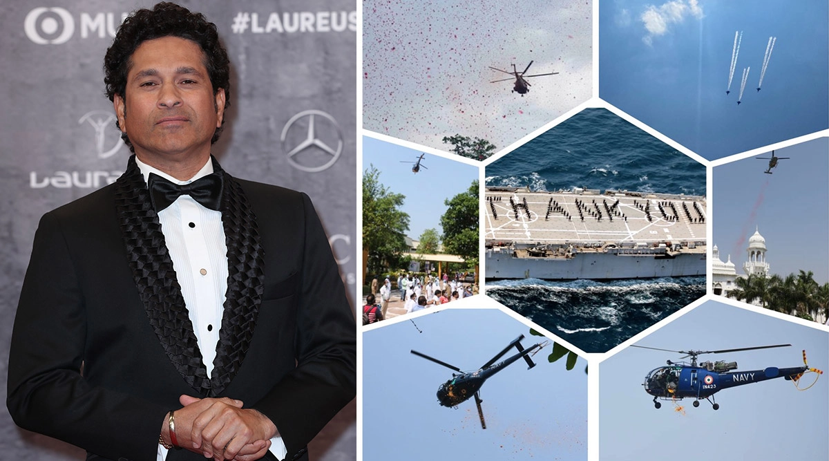 Sachin Tendulkar lauded the Indian armed forces for felicitating the COVID-19 warriors for their efforts and bravery in the fight against the coronavirus pandemic. The Indian armed forces – army, navy and air force – on Sunday (May 03, 2020) felicitated the health-care workers and other frontline workers for their commitment and efforts in India’s fight against the coronavirus for fighting the pandemic battle on the forefront. “Massive respect to each one of the #CoronaWarriors,” Tendulkar said in his post. Indian Army, Navy, Air Force Honouring COVID-19 Warriors Live Streaming: Watch Video Telecast of IAF Flypast and Showering Flower Petals and Navy's Illumination Show. Tendulkar, who holds a rank of the Group Captain in the Indian air force took to social media to show his appreciation towards the armed forces for applauding the health-care workers and showering petals on them for their work and continuous efforts in the fight against the pandemic. “A Big Salute from the Armed Forces to the Warriors on the ground who are helping Flag of India fight the war against this invisible enemy. Massive respect to each one of the #CoronaWarriors. Jai Hind!” Tendulkar wrote in a post. Indian Navy Personnel at INS Hansa Form Human Chain to Show Their Gratitude to COVID-19 Warriors, lets check it https://newsonthegotoday.com/s5yu6o